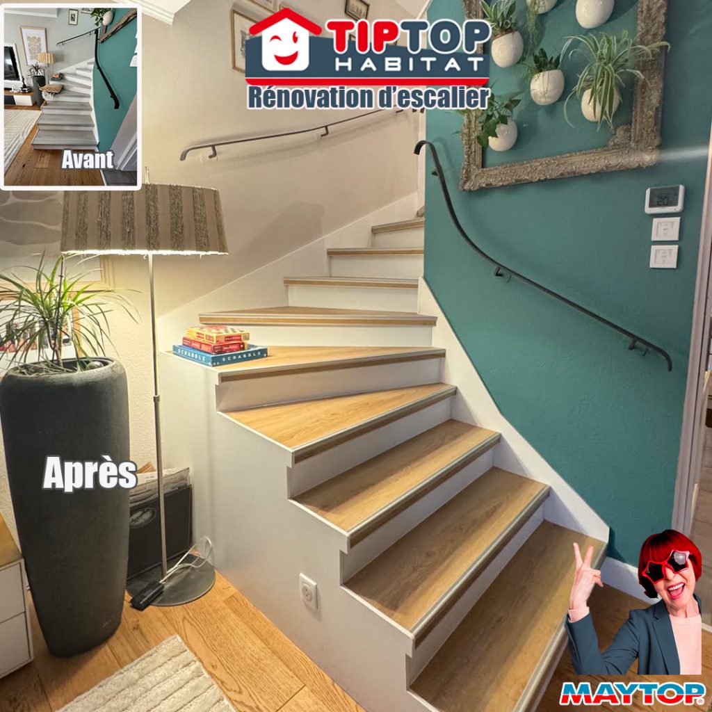 Ils nous ont fait confiance il y a dix ans, aujourd'hui nous changeons le coloris des marches pour une deuxième jeunesse. Nous avons remplacé les marches en conservant les autres éléments, pour une teinte plus chaleureuse. 📐 Pose sur mesure #menuiserie #escalier #habillageescalier #stratifié #artisan #hautrhin .- Date